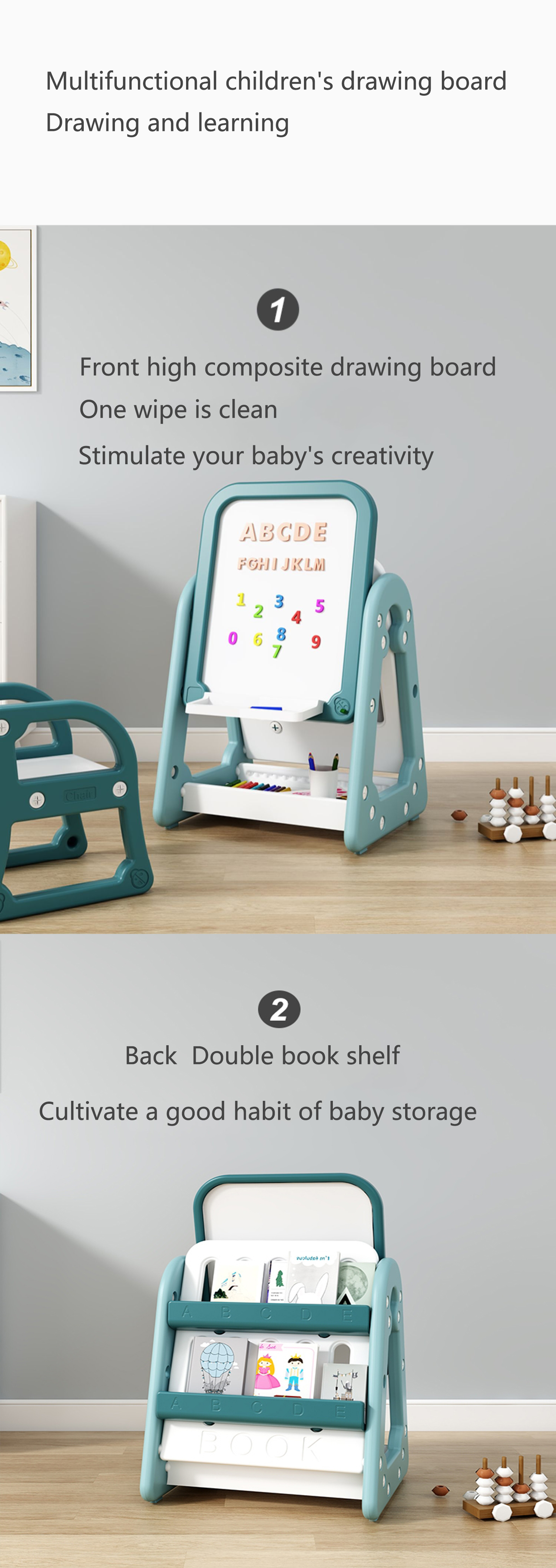 High Quality Child Magnetic Kid Drawing Board with Bookshelf