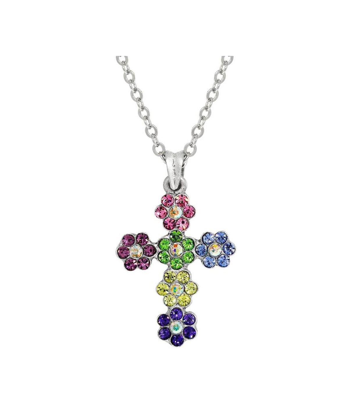 High Quality Crystals Cross Alloy Parts Charm Silver Plated Necklace