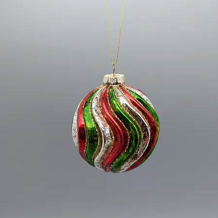 Item Name: High Quality Swirled Red Green Glass Christmas Ornament Metallic Finish Sequined Printing Techniques Features Tree Ball Ornament