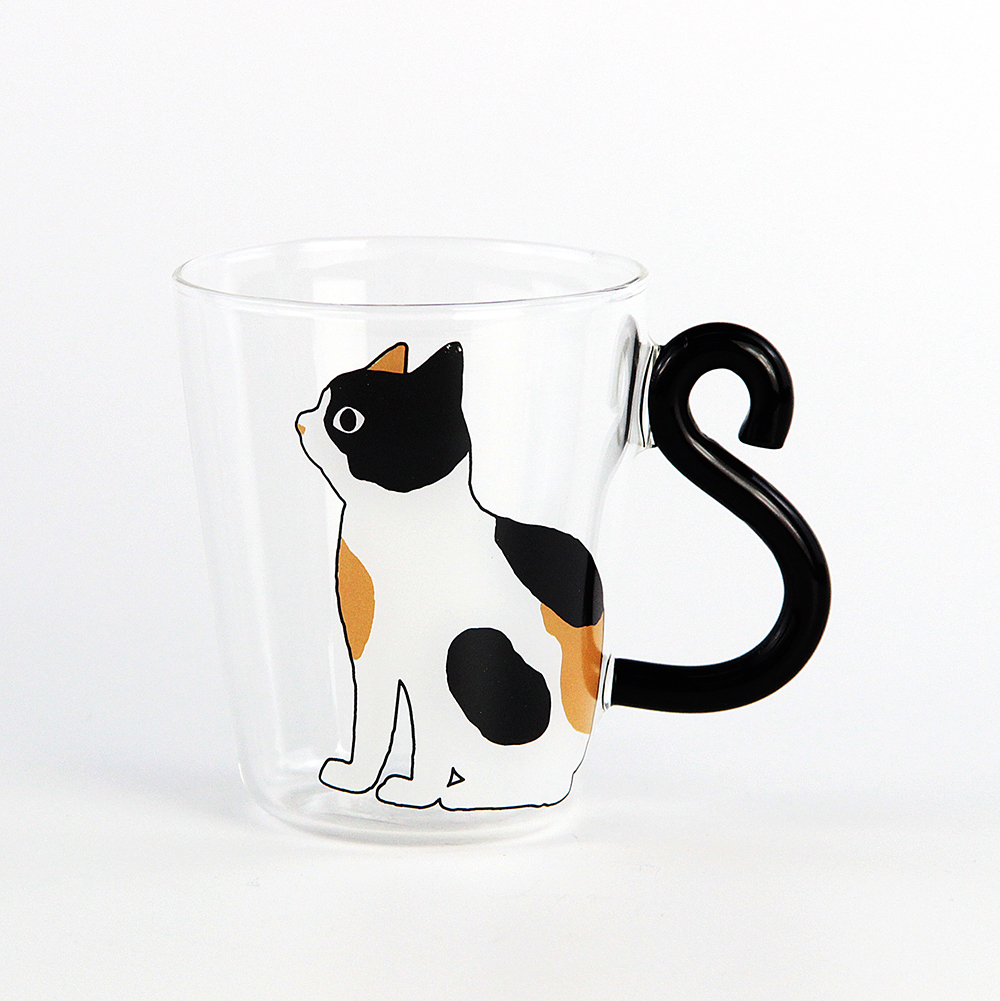 High borosilicate cup with handle and cat design