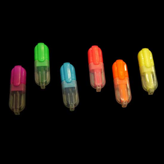 Featured here are six pieces of compact highlighters in bright colors. These felt-tip highlighter pens are used to draw attention to sections of documents by marking them with a vivid, translucent color. The versatile highlighters are perfect for schools, offices and banks.