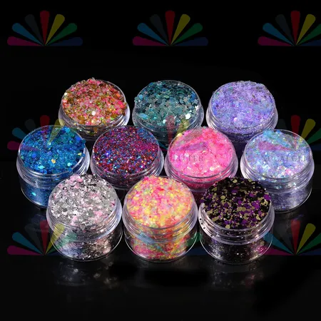 Holographic Hexagon Glitter Bulk - Mixed Color Chunky PET Sequins Set for Cosmetics and Crafts