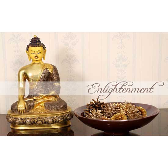 The home decoration depicts a bowl of dried and painted pinecones and a carved Buddha. The Buddha figure is exquisitely crafted to showcase the majesty it encompasses. Admire the grace of the enlightenment with this Buddha decoration.