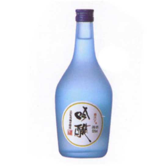 Displayed is honjozo sake that comes in a semi-transparent matte blue bottle for a stylish touch. This sake is professionally brewed for a refreshing taste and pleasant scent. This sake is a good choice for gatherings.