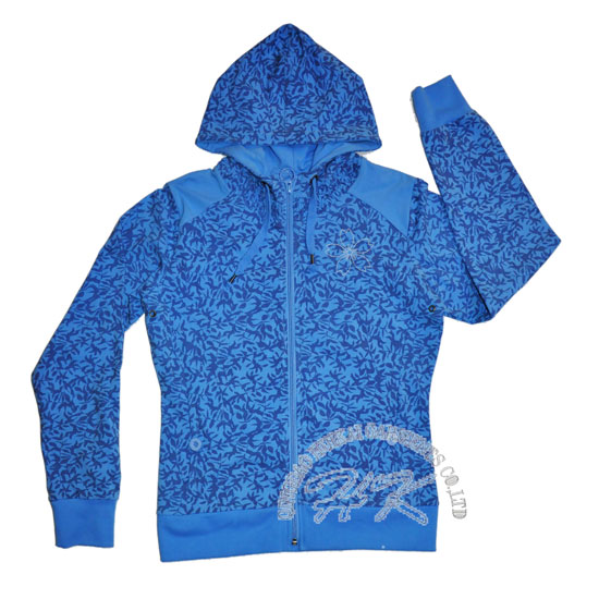 This featured jacket is dyed in a celestial blue for added appeal. The hooded design keeps your neck and head warm. The ribbed hem and cuffs offer a more flattering fit.