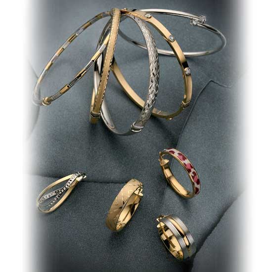 This is jewelry set includes a series of hoop earrings and tube bangles with a matching design. Each piece is finely made of yellow gold, white gold or rose gold. The simple yet elegant design makes this jewelry set an ideal accessory for you.