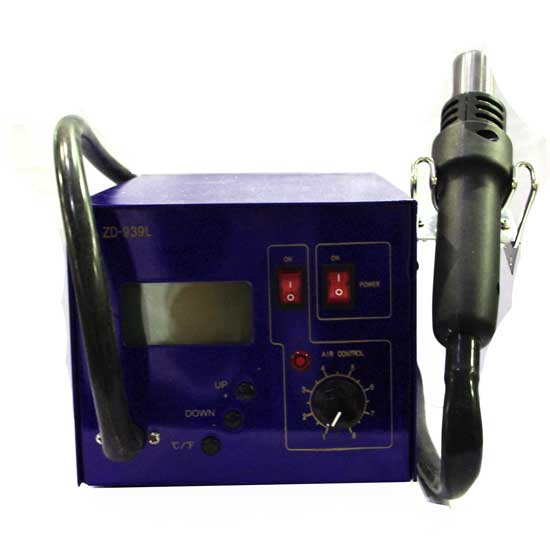 The self-contained hot air SMD rework station is compact in construction with an LCD digital display. It features an automatic cooling mode with a wide range of adjustments for the air flow rate and temperature to protect the heating element and handle when the switch is turned off. This hot air SMD rework station performs precision work with pinpoint accuracy.