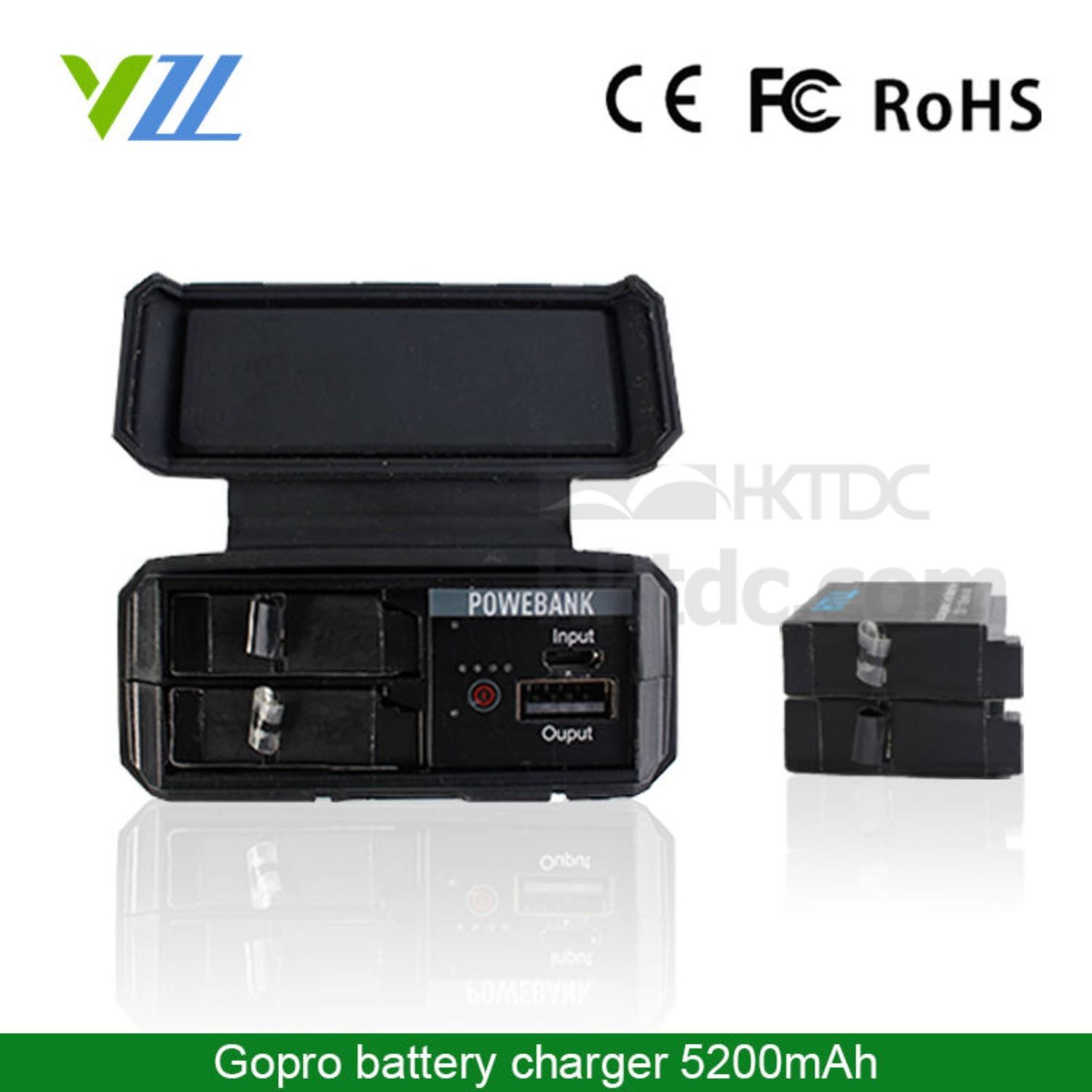 This Gopro battery charger with power bank 5200mah is special designed for gopro hero 4 , portable for two batteries at the same time, this can satisfy different needs of those love extreme sports ! it's 3-resisting , waterproof, shockproof and crashproof, hig quality and small size which can greatly decrease the weight !