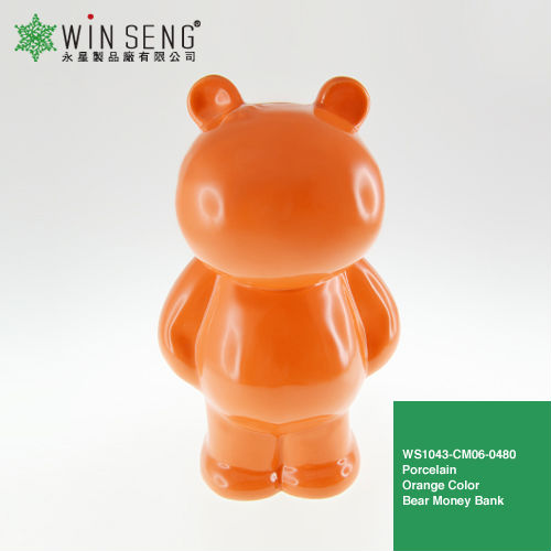 Hot Sale Porcelain Orange Colour Bear Saving Bank