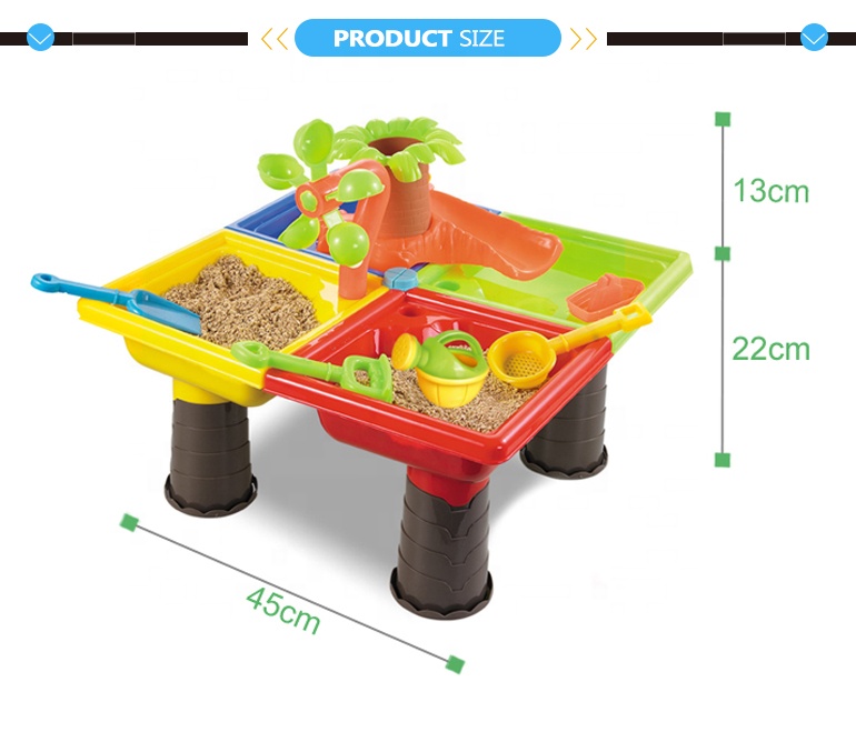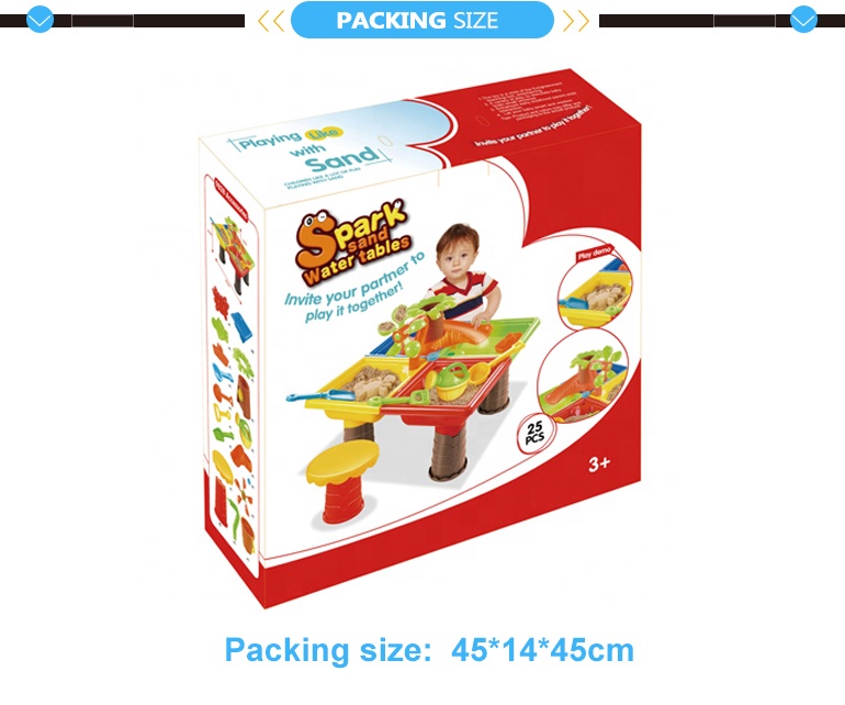 1. Material is environmentally friendly non-toxic.2. Sand water table with smooth surface and no burr.3.Colorful, various accessories with chair.