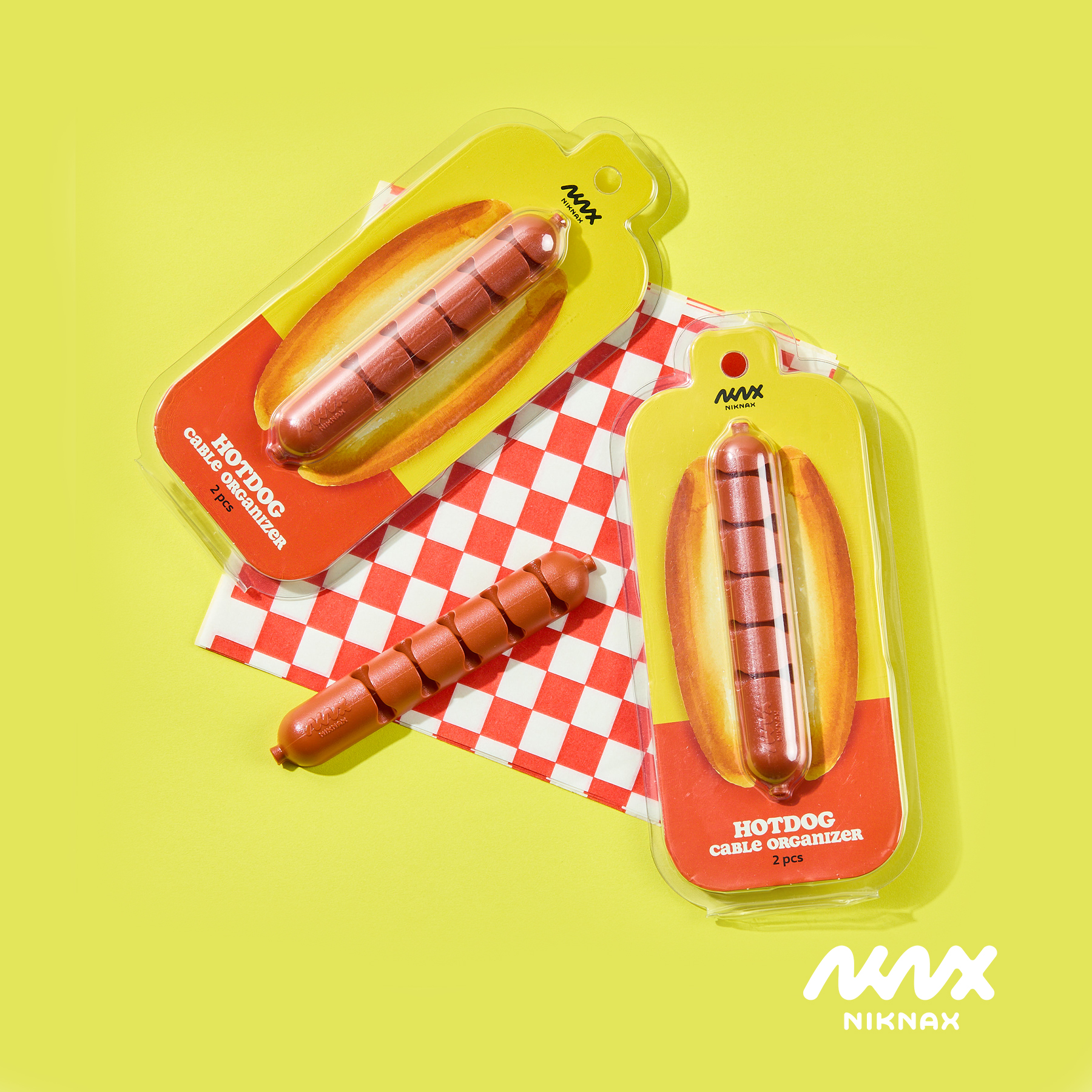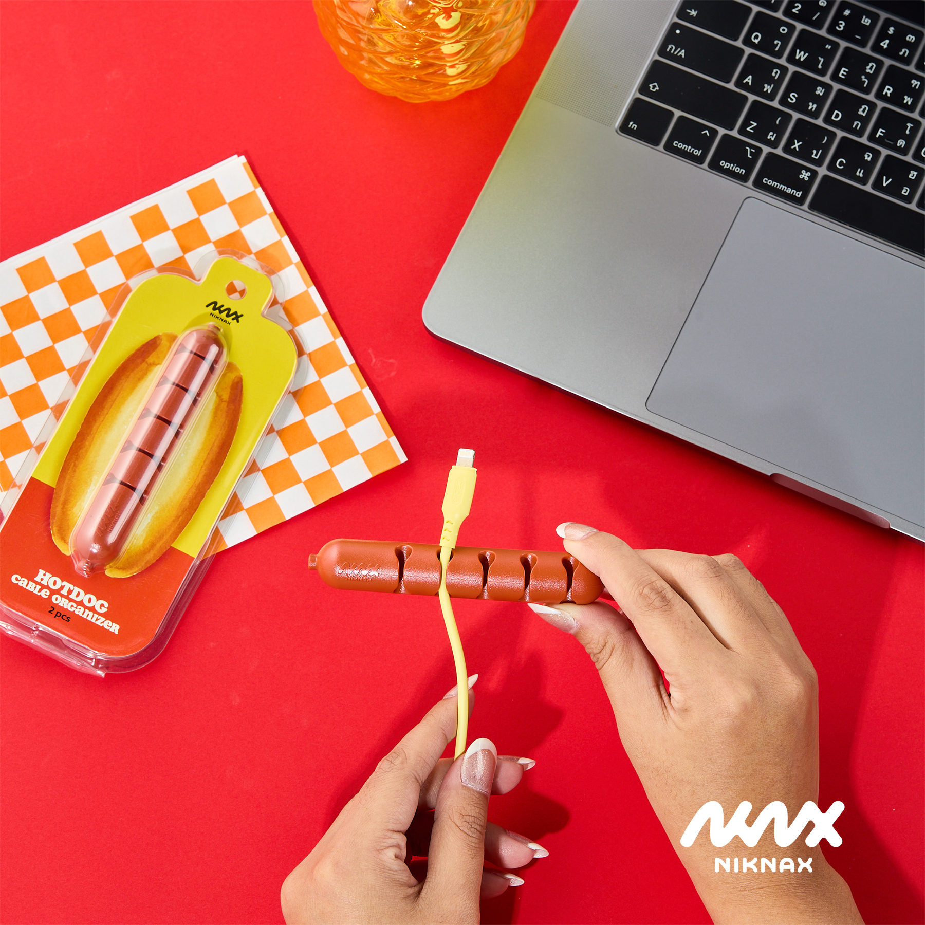 Niknax brings some fun into the office space with the Hotdog Cable Organizer! Each pack comes with 2 pieces to be used by the desk, the bedside table or wherever you have your cable clutters. The 5 cable slots fits most cable sizes from headphones to chargers.
