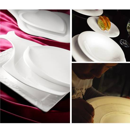 This is a set of hotel and restaurant tableware. They are made of fine china and are safe, solid and hygienic. They can be made upon clients' request and show their styles and spirits.