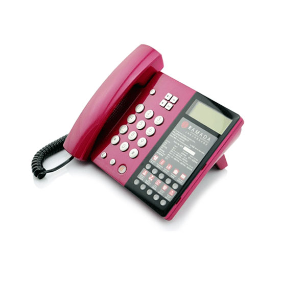 This is a speakerphone with an elegant and stylish design. It features a durable housing in red with a high-gloss finish. This well-made telephone is specially designed for use in hotels.