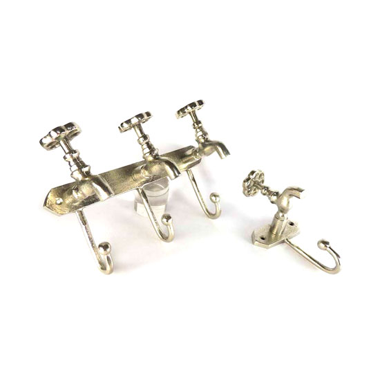 This household hook comes with a water tap design. It can be used to hang clothes, cookware and other utensils. It is made of durable metal for a long service life.
