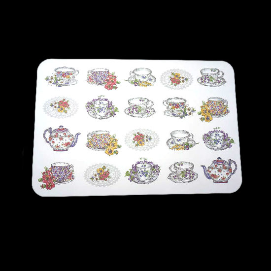 This is a placemat with a dainty and elegant design. It comes in white with exquisite and sophisticated patterns in bright colors. This item will add a touch of style to your dining table.