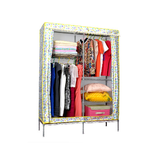 This is a practical wardrobe with a durable structure. It features a chic cover with colorful dot patterns. This wardrobe is easy to assemble and disassemble.