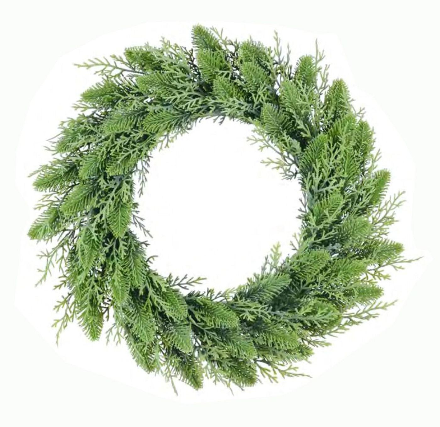 This artificial wreath is made of weather and UV resistant plastic. It creates a green accent to beautify the space. It is a good decoration for your home or workplace.