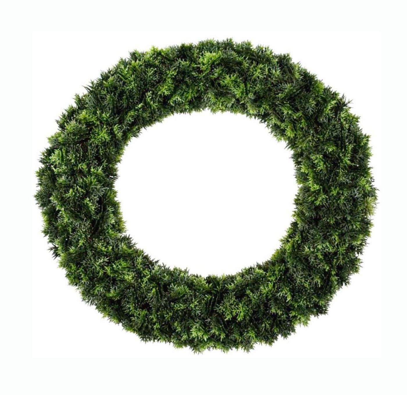 This artificial wreath is made of weather and UV resistant plastic. It creates a green accent to beautify the space. It is a good decoration for your home or workplace.