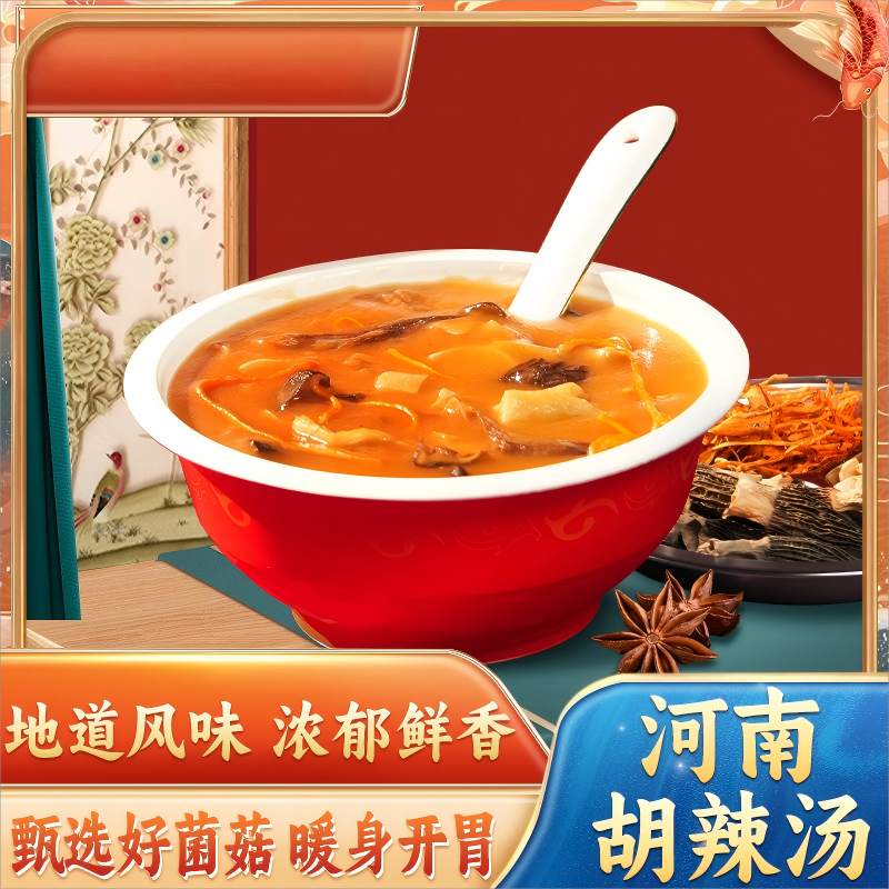 Adding Ingredients: Add selected ingredients such as Heilongjiang Dongning small bowl-shaped black fungus, Huaiyang seven-core daylily, handmade gluten made from Yihai Kerry flour, and Nanyang yellow beef. The ingredients are selected from high-quality local sources to ensure that each bowl of Hulatang is mellow and rich, full of nutrition.