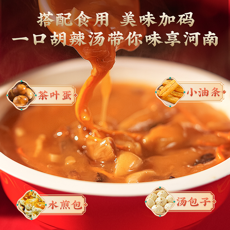 Base Soup Stock: Different from traditional soup stocks, we use Nanyang yellow cattle shank bones and Zhoukou Huaiyang goat foreleg bones as raw materials, simmering them over low heat for 5 shichen (equivalent to 10 hours), symbolizing the convergence of the five elements and the harmony of the five flavors.
