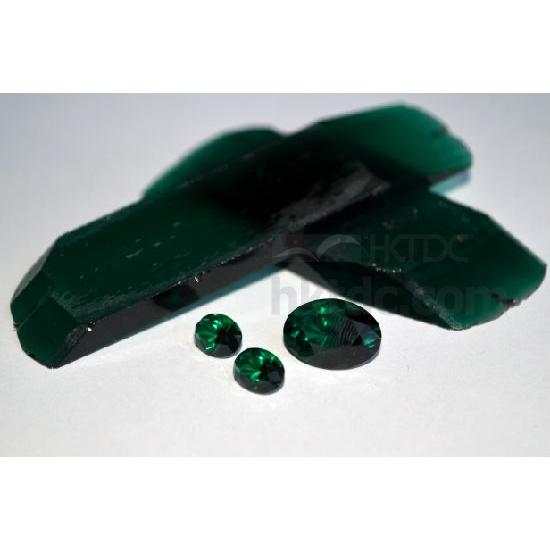The crystals of this grown hydrothermal emerald (GHE) are received by the method of hydrothermal recrystallization of natural beryl. The GHE material can be faceted in the form of cut stones and can be delivered as rough material. The crystals are resistant to temperature shocks and are suitable for pouring gold in the industrial production of jewelry.