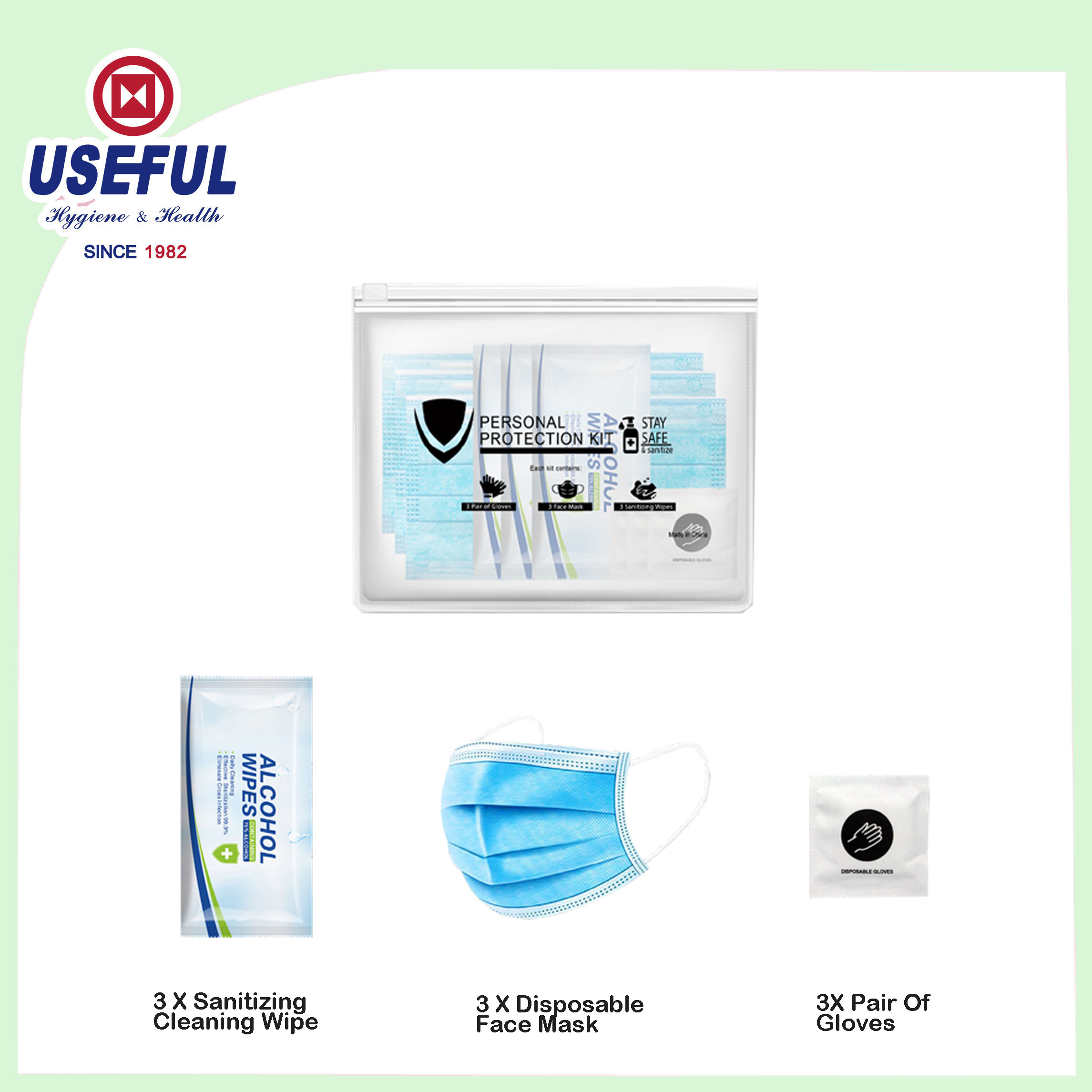 Including 3xSanitzing Cleaning Wipe, 3x Disposable Face Mask, 3xPair of Gloves