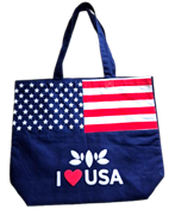 The contrasting navy base with vibrant flag print creates a premium visual appeal, while the spacious interior and sturdy handles ensure practical functionality for daily use, shopping, or travel.