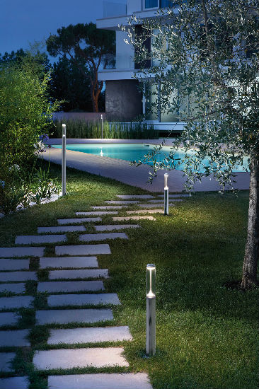 A small waterfall of light. This is what the thin illuminated stem holding the 4 power led is evoking. The whole equipment well expresses the project idea: direct the light towards down in a soft atmosphere. A small opal cover protect the light an allow the light to enlarge to 120°. This make I-Mago suitable to be installed near the walkways, in the green, wherever an elegant and gentle illumination is required. I-Mago contains the driver 220-250V 50-60Hz and can be installed on the Goccia rounded size poles in aluminium or AISI 316L stainless steel or on the standard 60 m diameter pole by the adaptor.