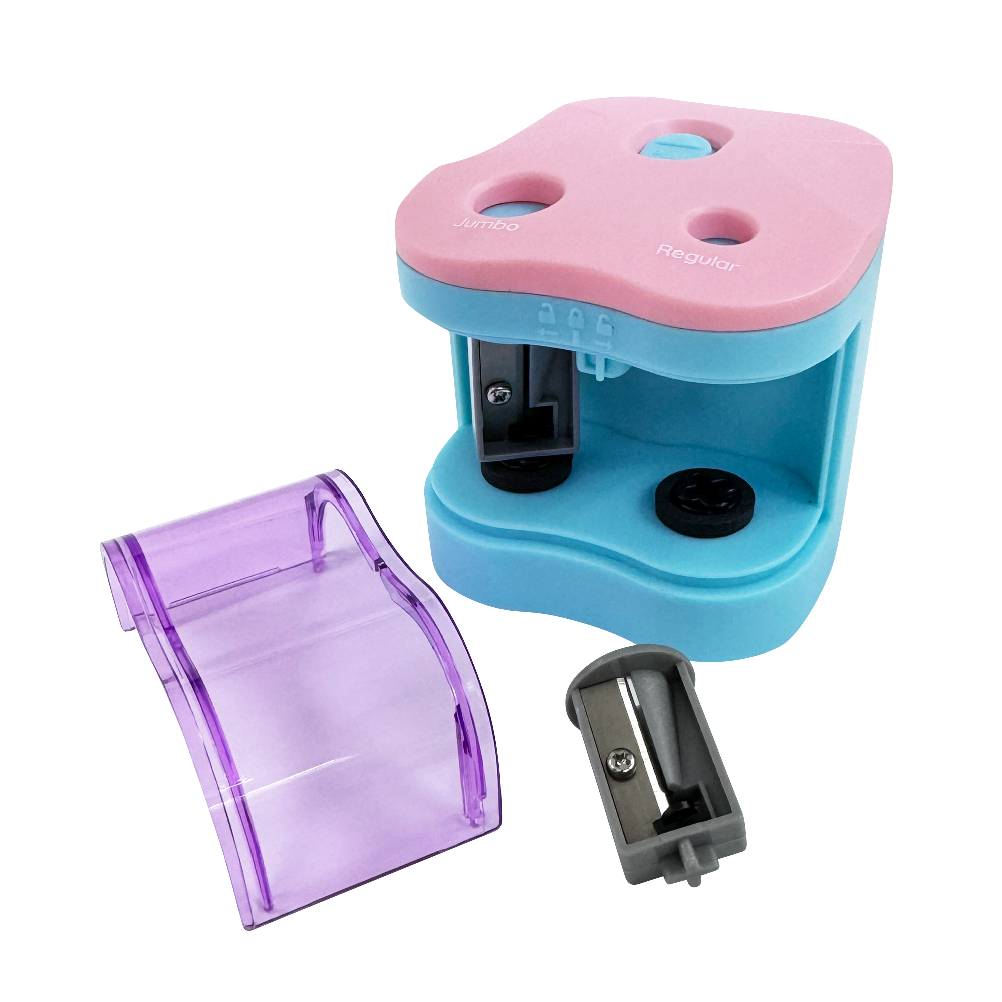 Two- hole pencil sharpener is quick and convenient for use anywhere