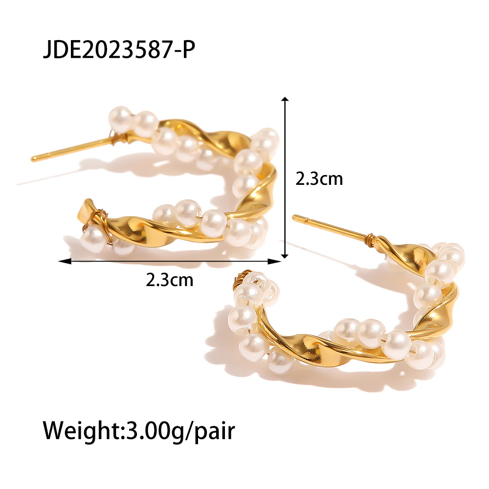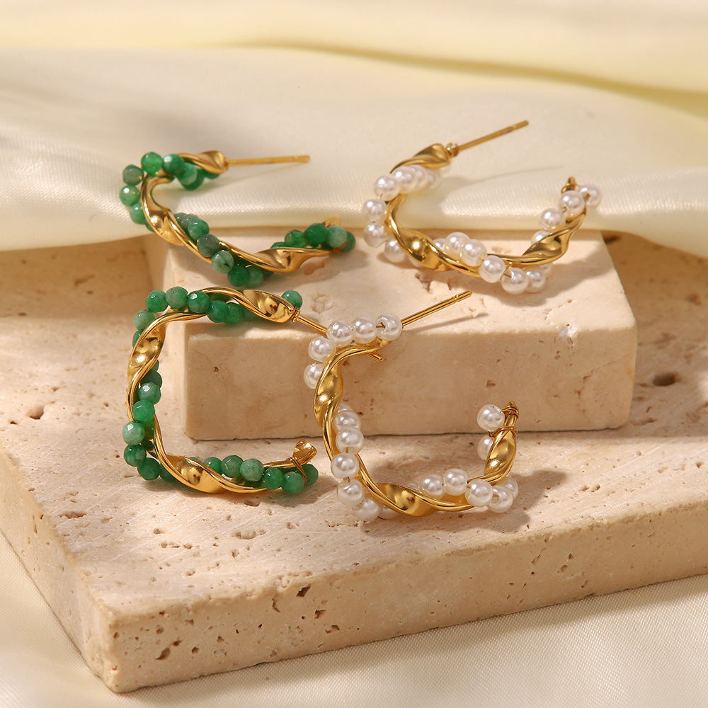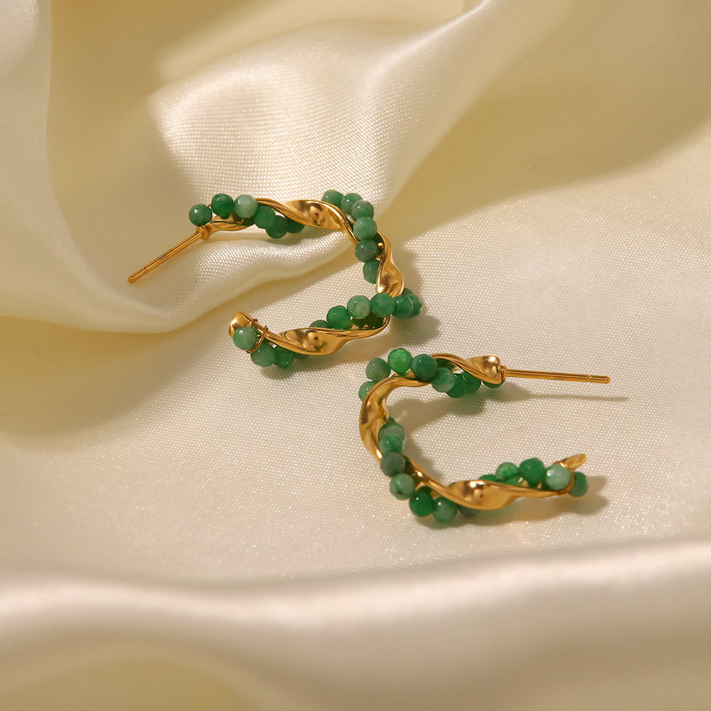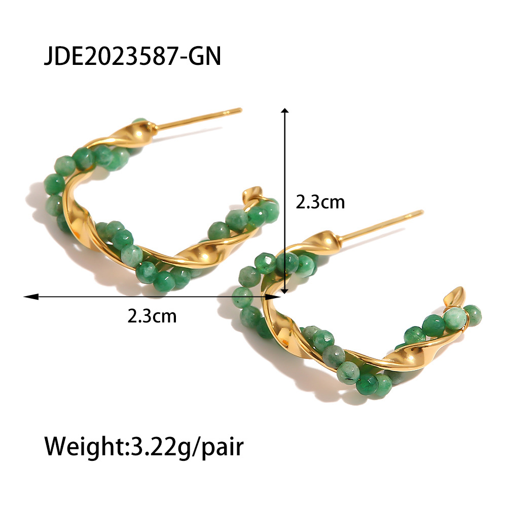 INS French Style New 18K Gold Plated Vintage Inlaid Green Natural Stone Geometric Stainless Steel Earrings Fashion Earrings