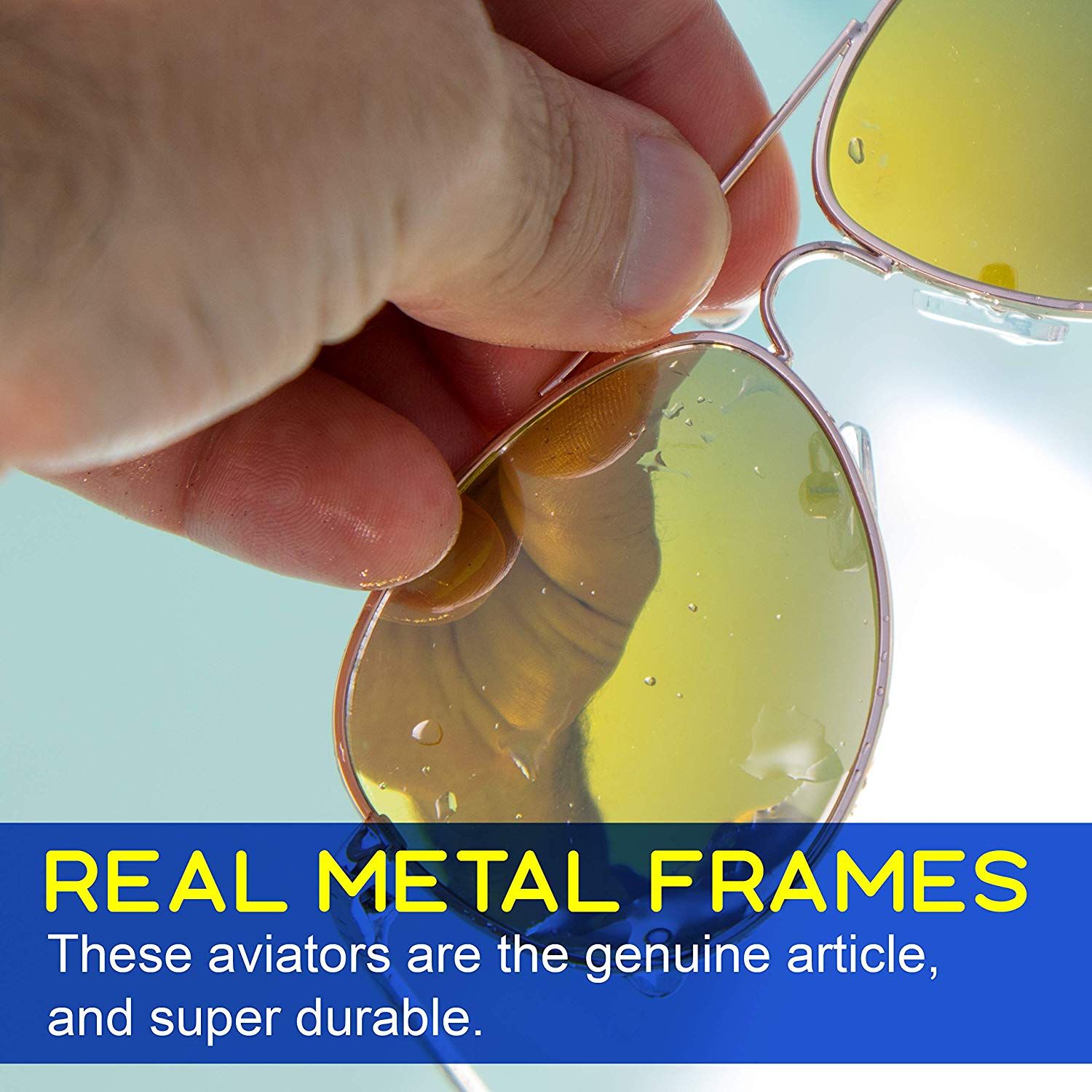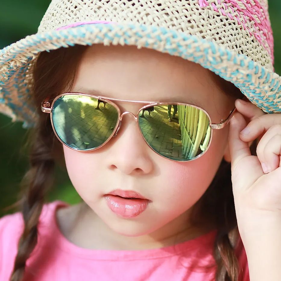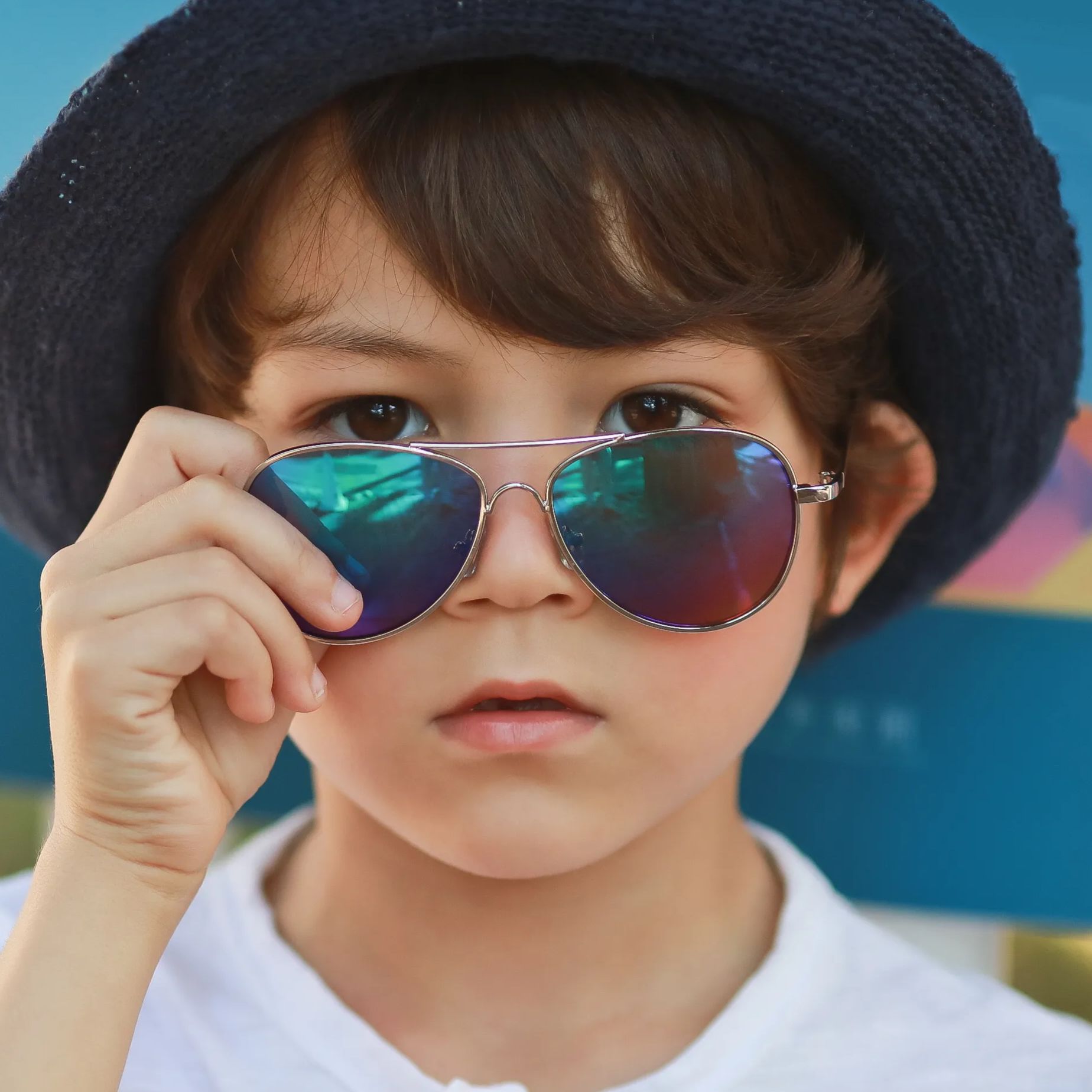 Beautifully made high quality aviator sunglasses for children. Available in a gold frame with gold Revo mirror or silver frame with blue/green Revo mirror. We use only the best quality high impact resistant (PC) polycarbonate lens in G-15 with 100% UV protection.