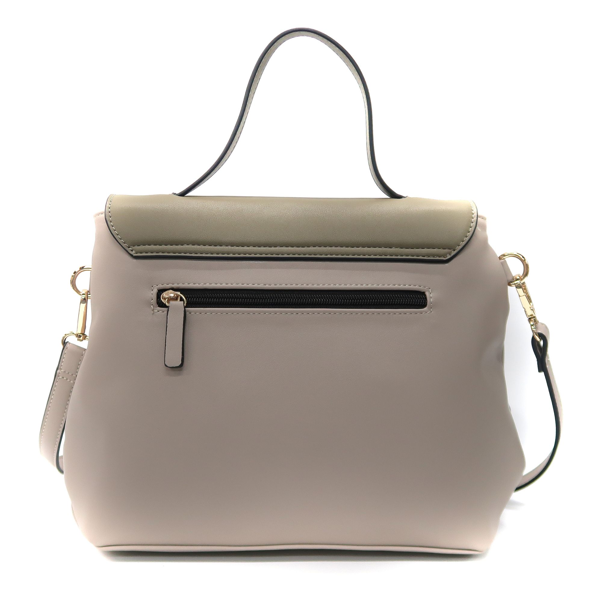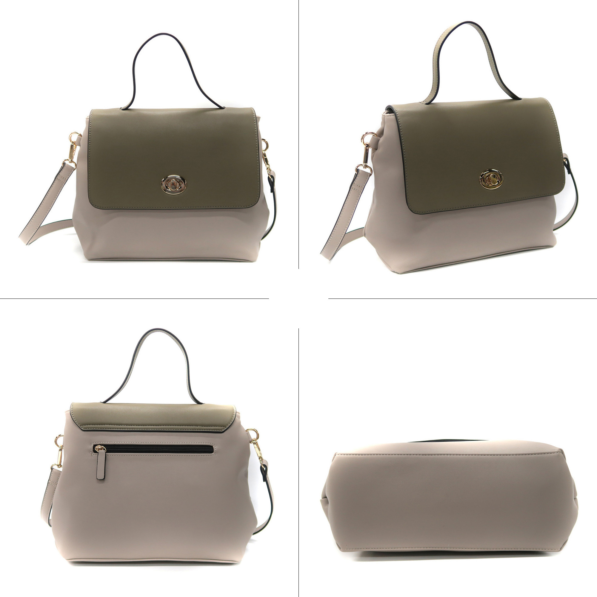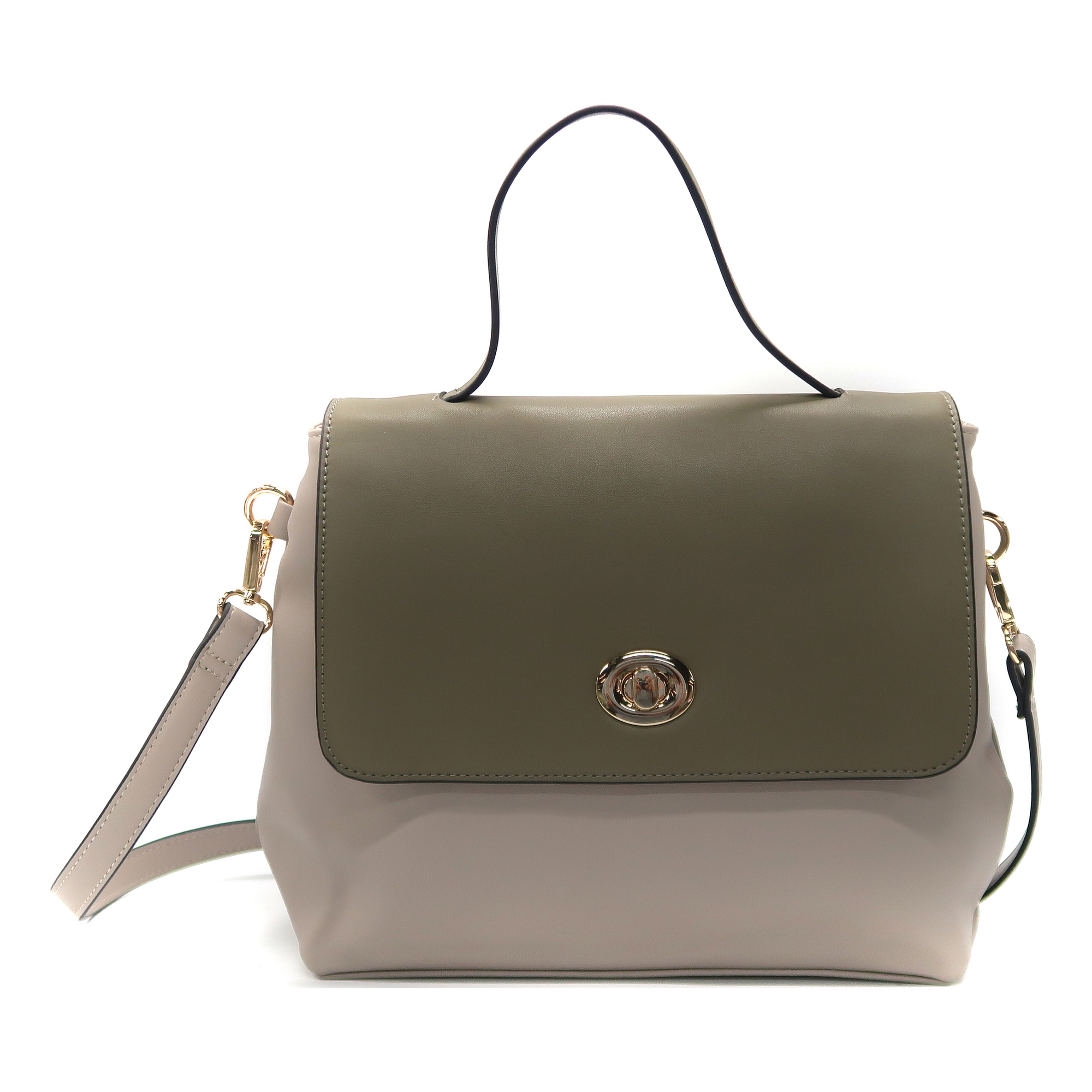 Imitation Leather Women handbag Satchel bag Front flap with metal turn lock Grey