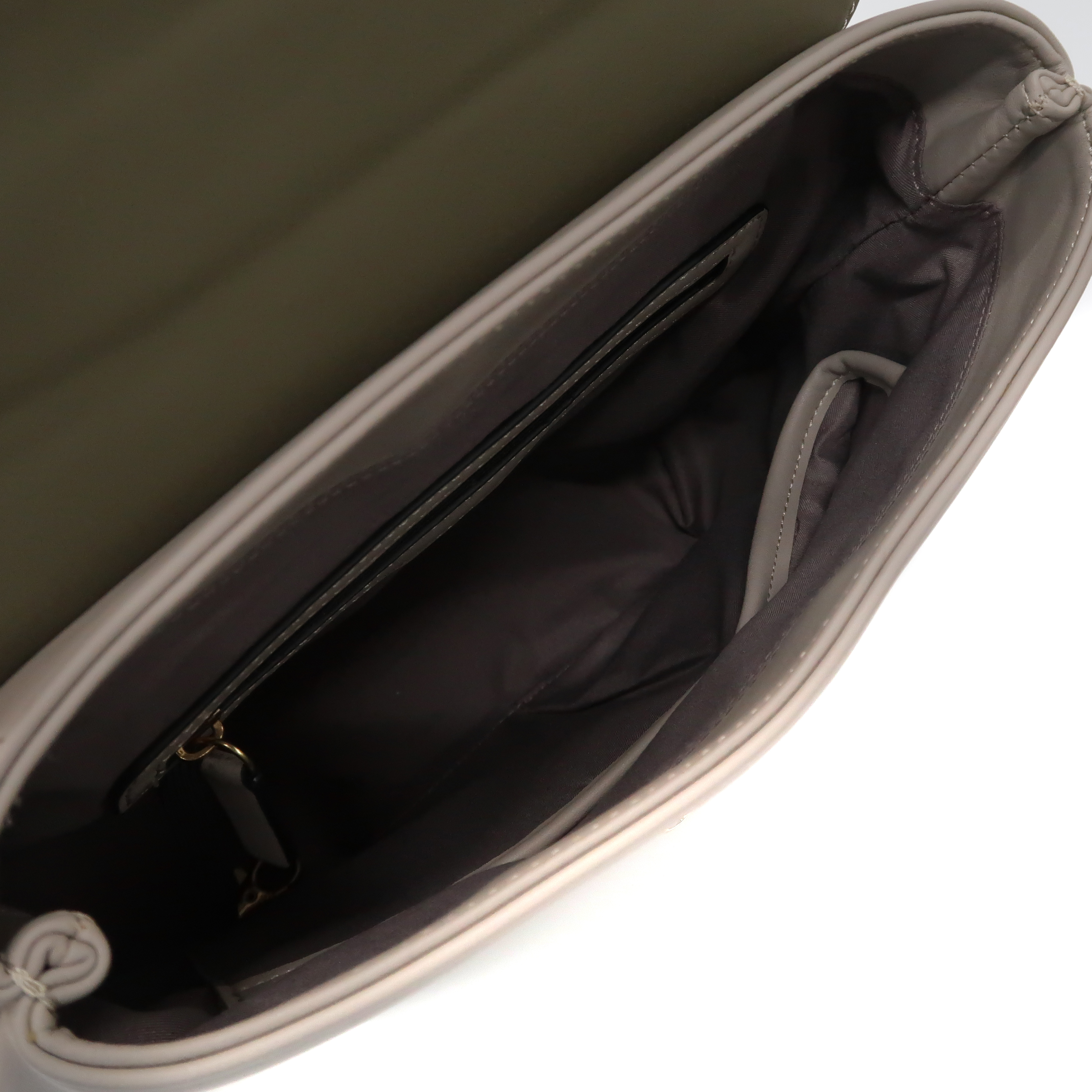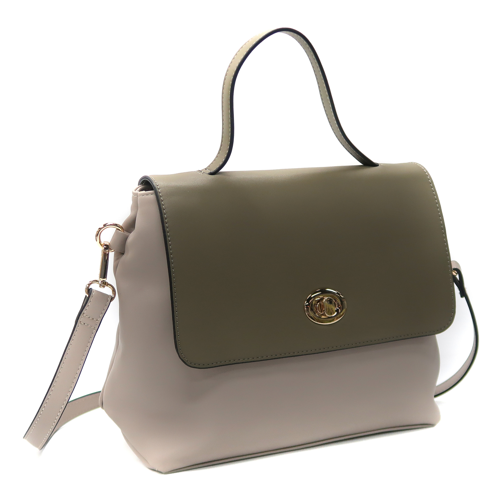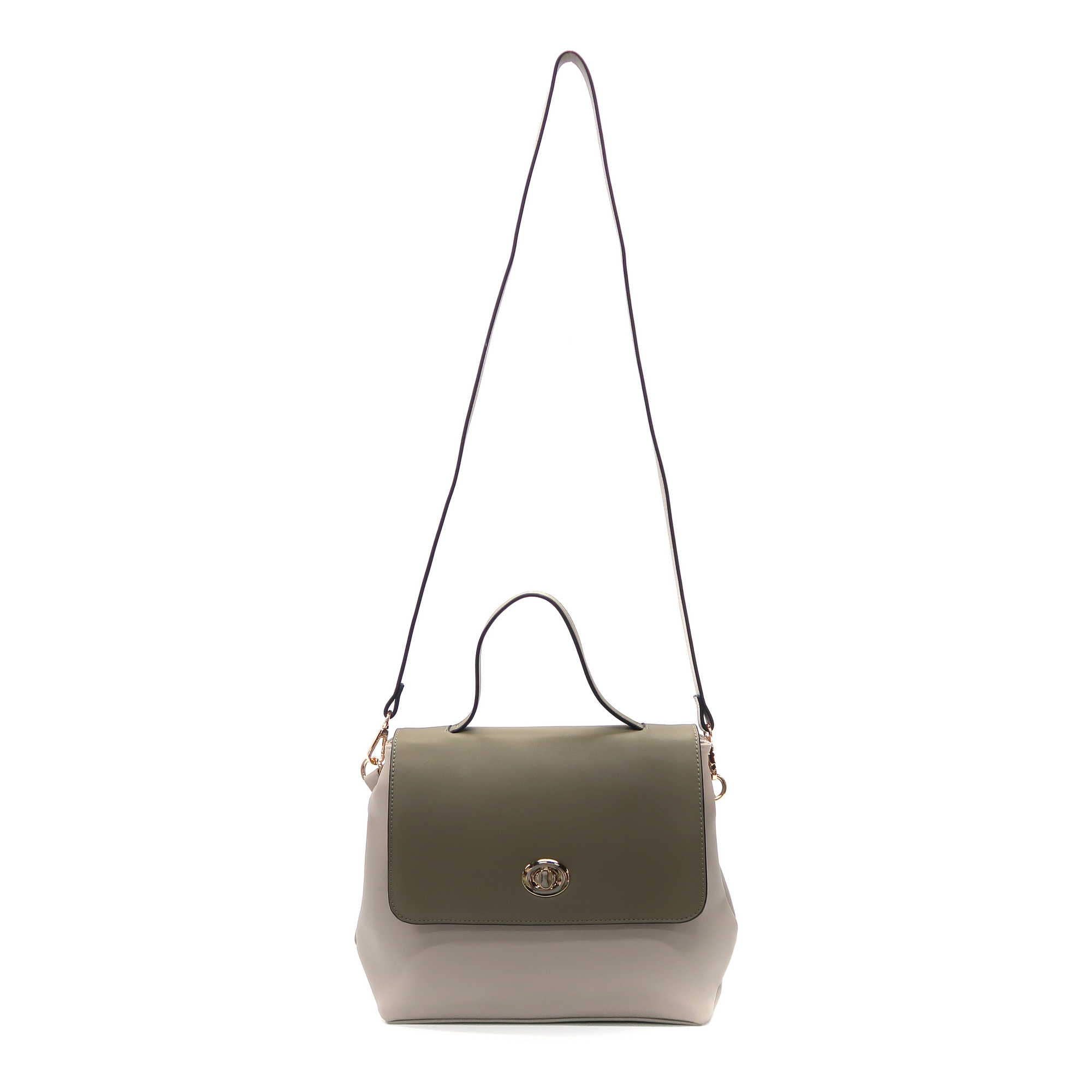 Imitation Leather Women handbag Satchel bag Front flap with metal turn lock Grey