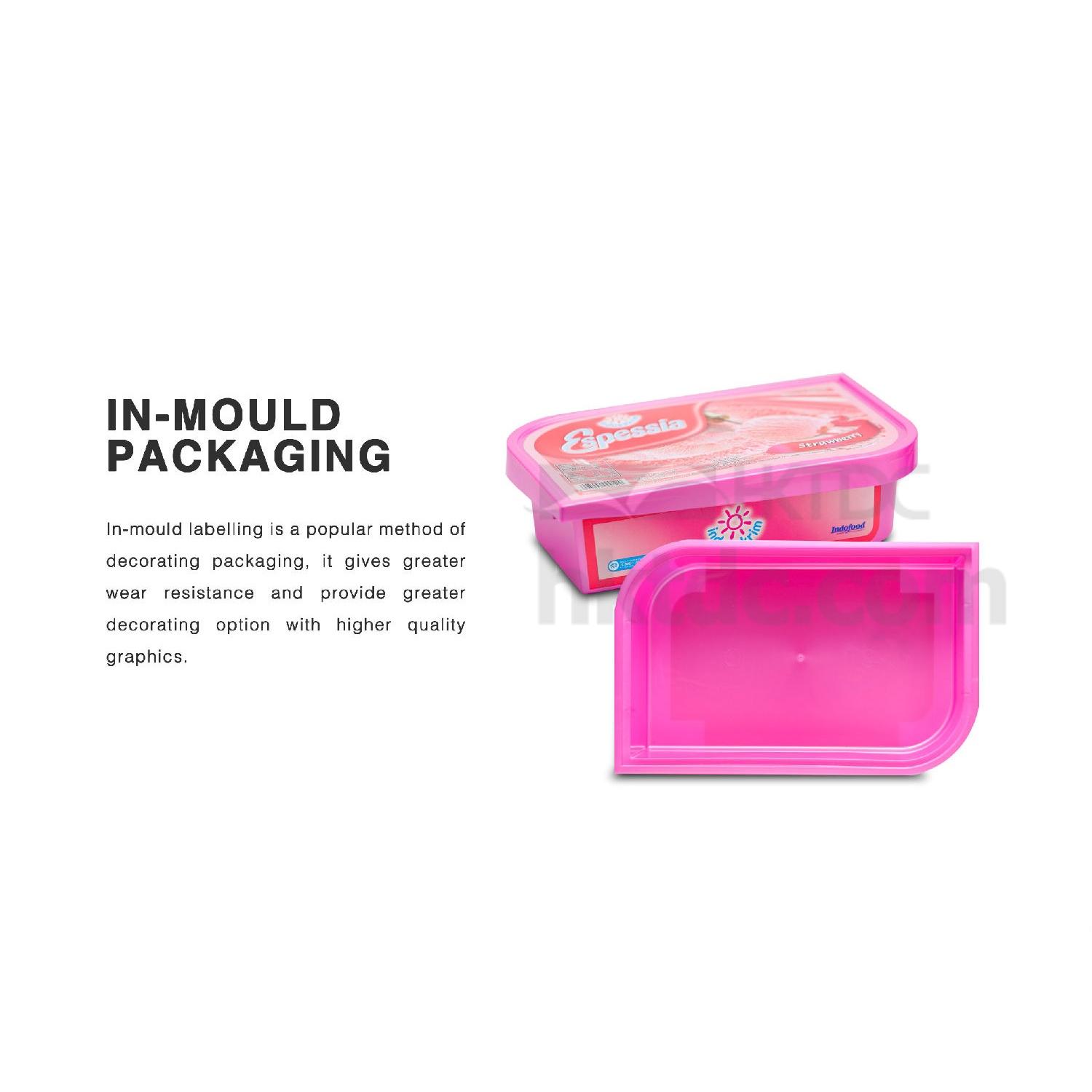 In-mould labelling is a popular method of decorating packaging, it gives greater wear resistance and provide greater decorating option with higher quality graphics.