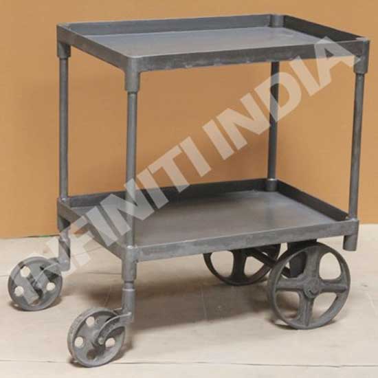 This is a two-tier industrial trolley coming in a solid gray tone. It is fitted with nimble big and small wheels for easy moving. The durable construction enables it to serve for a long time.