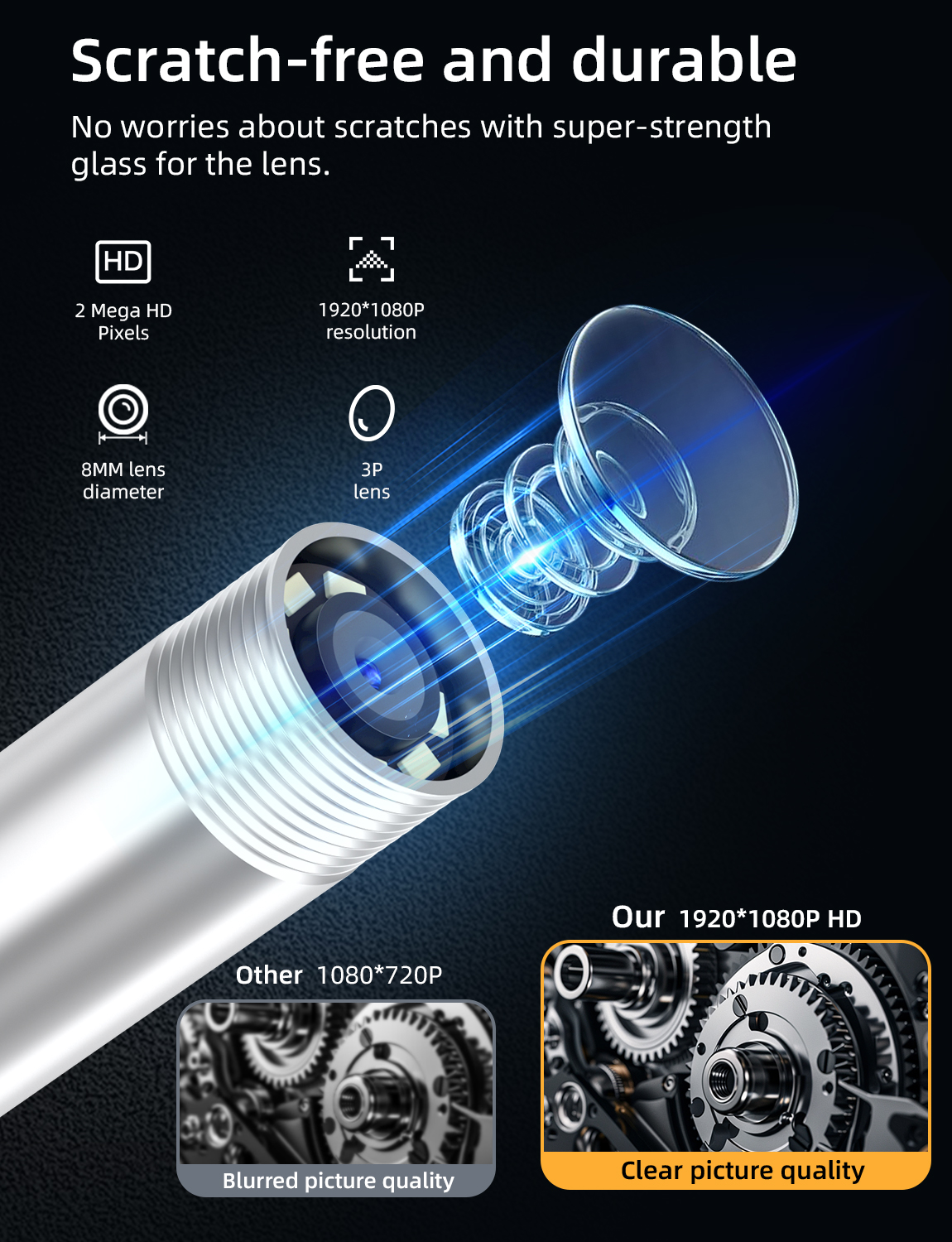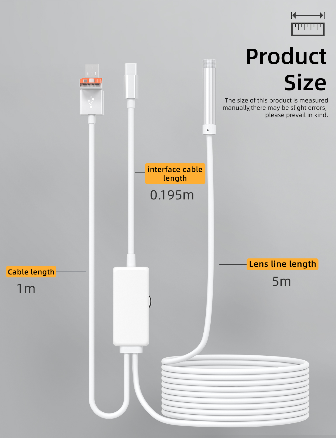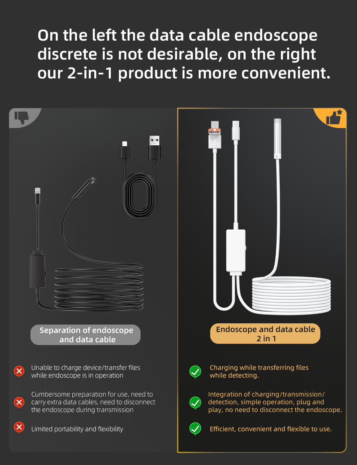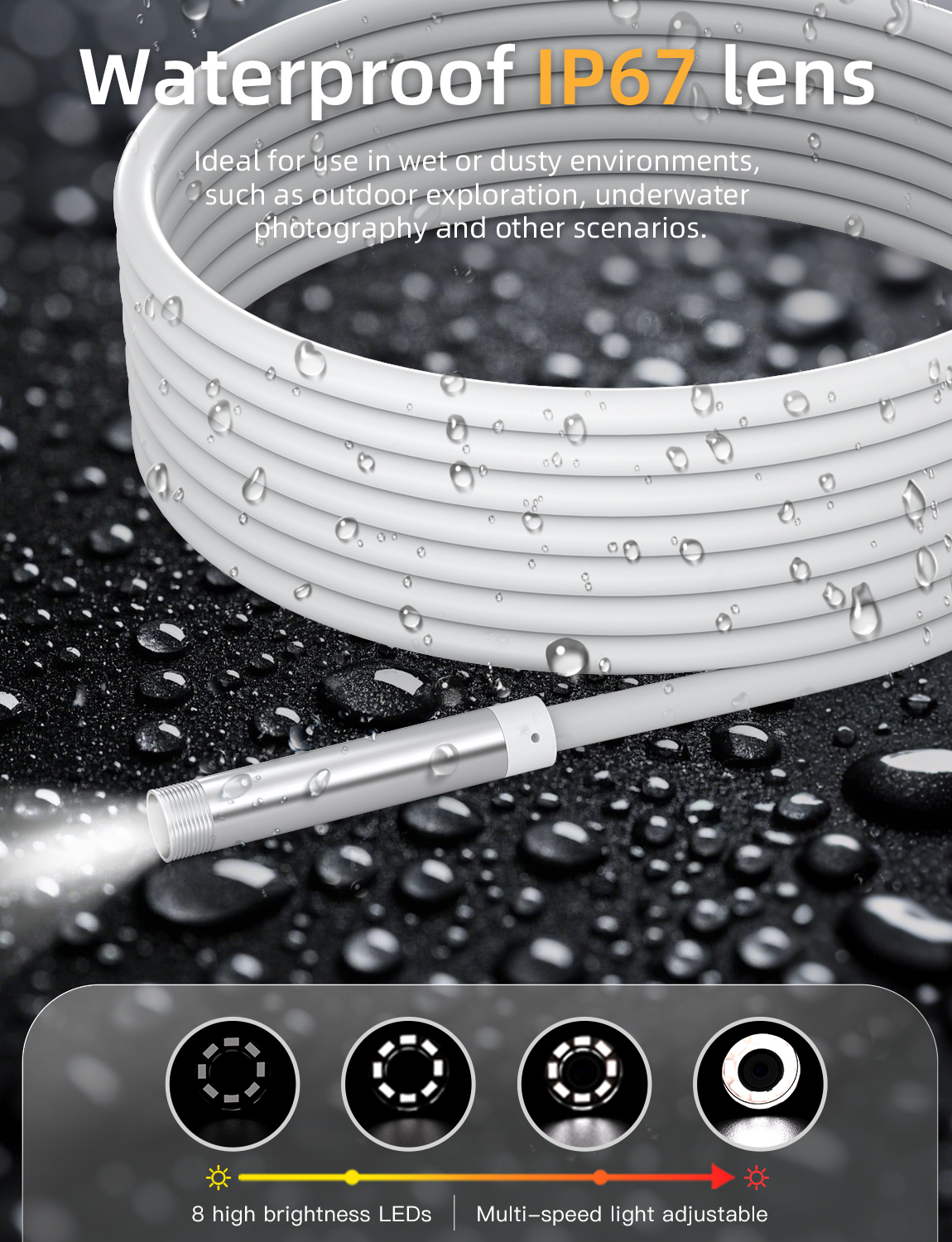 As a professional digital accessories provider, ZOIOT presents this 2-in-1 industrial endoscope with charging & data sync cable, designed for versatile inspection needs. Featuring a 2-in-1 USB-A/USB-C interface, it supports plug-and-play across iPhone 15/16, iPad, Android, and PC systems, enabling simultaneous device charging, file transfer, and endoscopic inspection. Equipped with an IP67 waterproof 8mm lens, 1920×1080P HD resolution, and 8 adjustable LED lights, it delivers clear visuals in wet/dusty environments. The semi-rigid 5m cable ensures flexible navigation into narrow spaces, while its compact white design offers portability and easy identification—ideal for plumbing, automotive repair, and industrial maintenance.