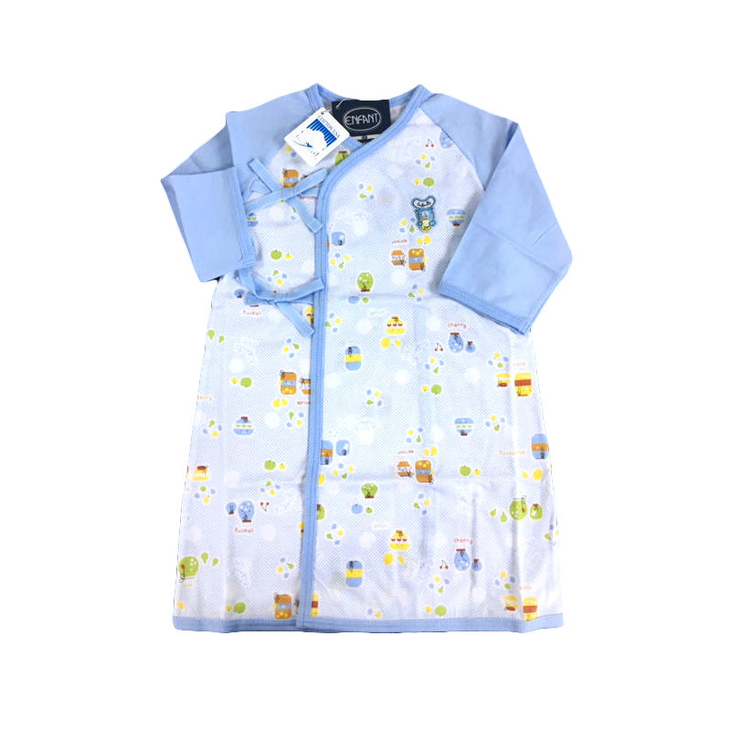 Wrap your baby with optimal comfort in this full-length gown. The long sleeves offer full protection to the baby during cool nights while the buttonless design enhances wearing tender touch with the soft threads. Adorned with loveable all-over print on the bodice, the solid raglan sleeves and trims complete the clothes in soothing tones.