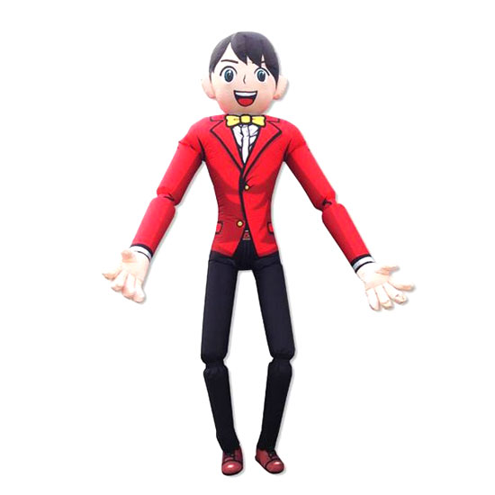 This air-injected mannequin features a man in an eye-catching uniform. The mannequin can be moved with the rods that are attached to its hands and legs. Greet your guests with this king-size, eye-catching mannequin.