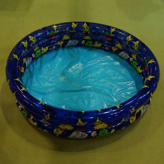 This is an inflatable swimming pool with a 3-ring structure to prevent spilling. It is printed with cartoon ducks that appeal to little kids. This inflatable swimming pool is a great outdoor summer toy for small kids.