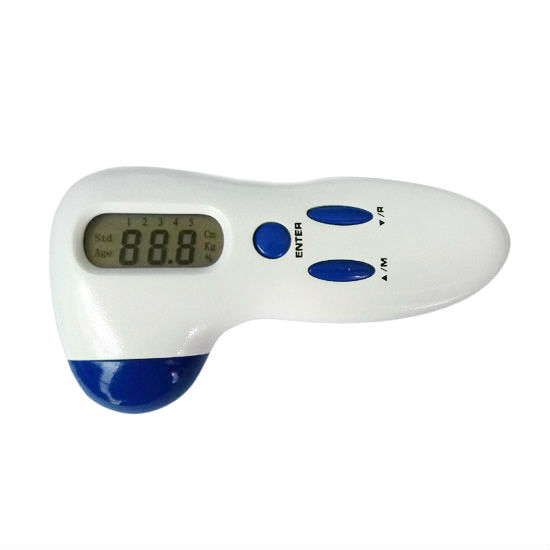 Check your body fat composition with this body fat analyzer. This body fat analyzer boasts a two-tone design with a large digital display. Portable and lightweight, this useful tool offers the most effective way to track the progress of your diet and exercise program.