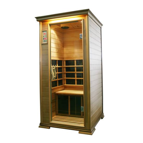 This is an infrared sauna which is made of red Cedar Hemlock basswood. The sauna has is equipped with temperature control and thermometer to help regulate and display the temperature in the sauna.