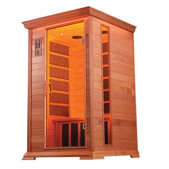 This is an infrared sauna which is made of red Cedar Hemlock basswood. The sauna has is equipped with temperature control and thermometer to help regulate and display the temperature in the sauna.