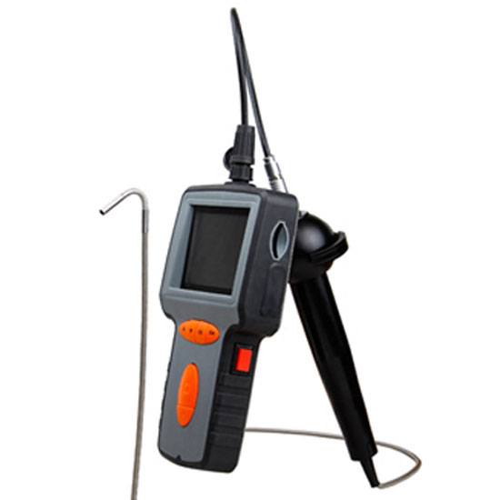 This is an industrial inspection camera with a 1 to 30 meter long camera tube. It has 4 adjustable LEDS on the top of the camera. This camera supports video recording and A/V output.