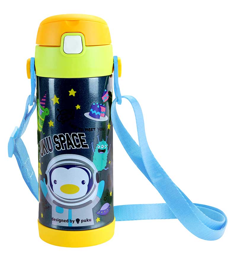 350ml bottle Double layer insulation Suitable for both hot and cold drinks Hot/cold insulation up to 6 hours one touch flip open Soft straw cross cut With carry strap and body strap