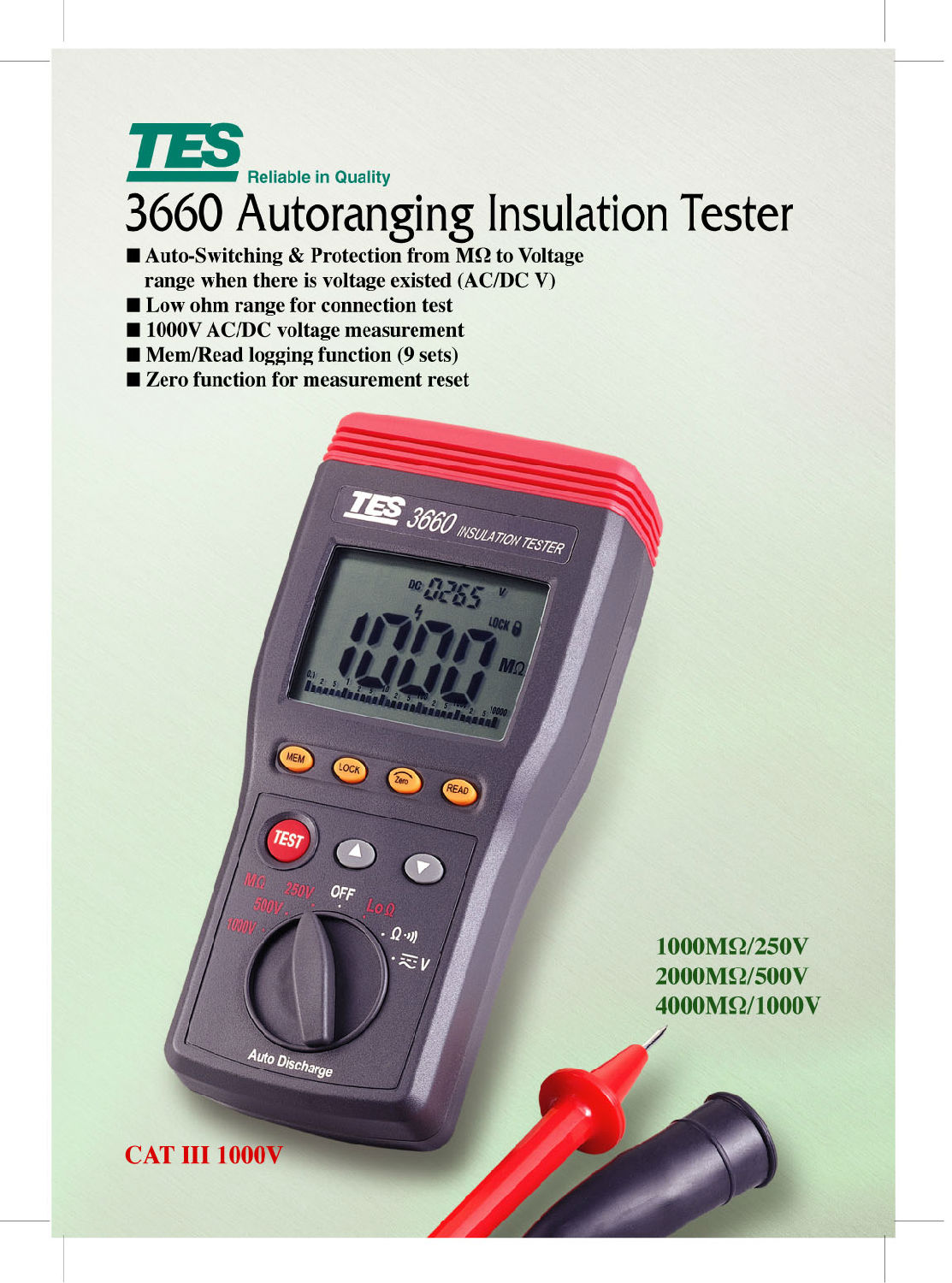 TES-1604 Datalogging Insulation Tester (RS-232)