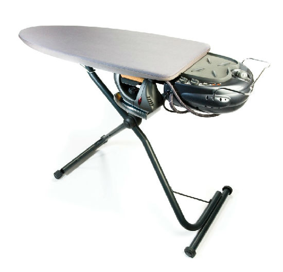 Highlighted here is an ironing board that allows variable height adjustment for comfortable use. The high-quality construction makes it a durable ironing board. This ironing board is integrated with a steam station to get great laundry performance at home.