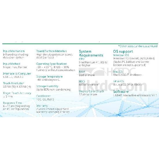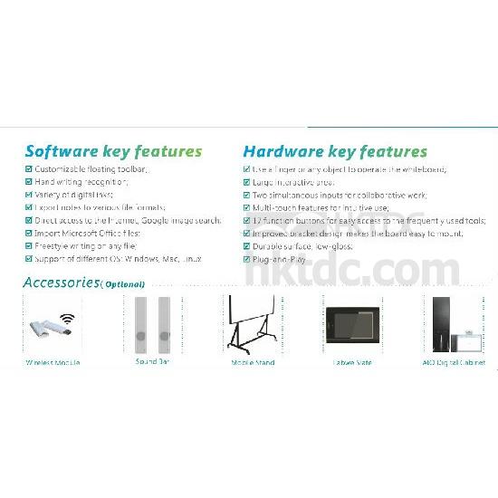 - Touch recognition: finger, stylus or any other pen or finger shaped object