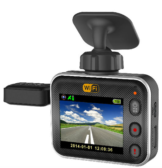 Features: Portable Mobile app control Internet live streaming Quad-camera live view Two-way voice communication 160° wide angle lens Wide dynamic range (WDR) Lane departure warning system (LDWS) External GPS receiver (optional) Specifications: Image sensor: 3MP Resolution: FHD 1,080p/30fps Lens: F2.4 FOV: 160° wide angle LCD display: 2.0-inch LCD Storage media: microSD/SDHC/SDXC (up to 64GB) File formats: Photo: JPEG Movie: MP4 (H.264) Still image resolution: 2,304 x 1,296 Wireless compliant: IEEE 802.11b/g Wireless modes: WiFi mode/Cloud mode Live preview on mobile: WVGA/WQVGA GPS: external GPS receiver (optional) G-sensor: 3-axis G-force sensor Battery: 700mAh lithium-ion Power adapter: 5V/1A USB: micro USB HDMI: micro HDMI Dimensions: 50.5 x 63 x 19.5mm