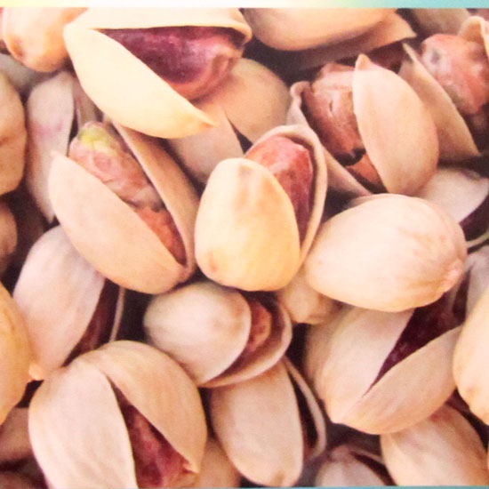 Featured are pistachios with kernels rich in vitamins B1 and B2. The pistachios are grown and harvested in Iran where the best pistachio trees are planted. Besides vitamin B1 and B2, the nuts are also rich in protein and carbohydrates, making them healthy snacks for kids and adults.