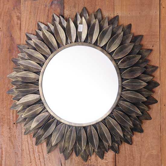 This round mirror flaunts a touch of antiquity and classic charm in a simplistic design. The rows of leaf ornaments remind users of nature. The subdued copper hues delight any room in the house.